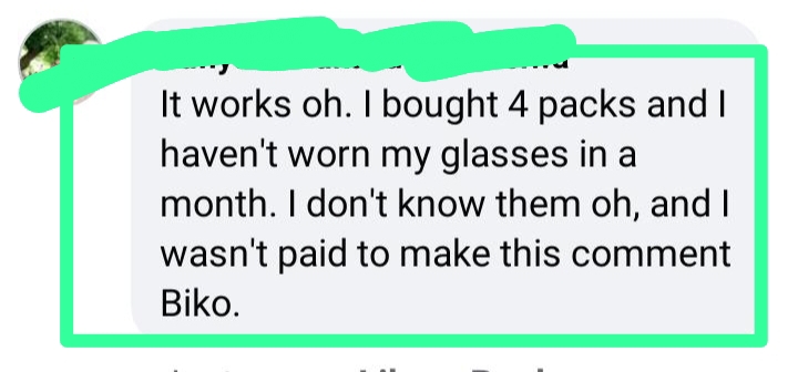 After using this product for 6 days, I cried when I found out I could read again without my glasses after years. This tea is a blessing!