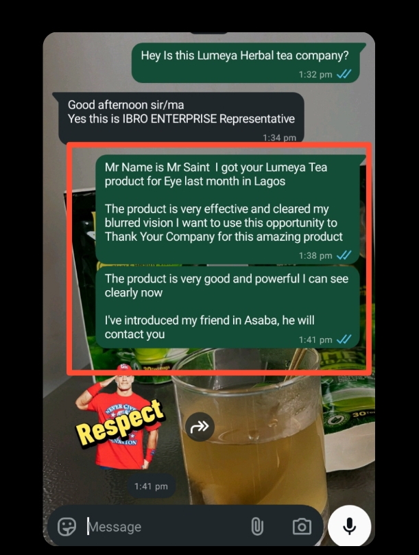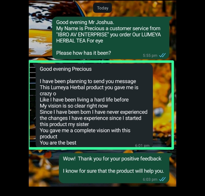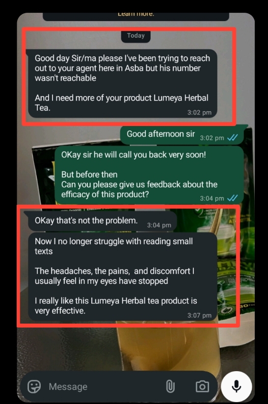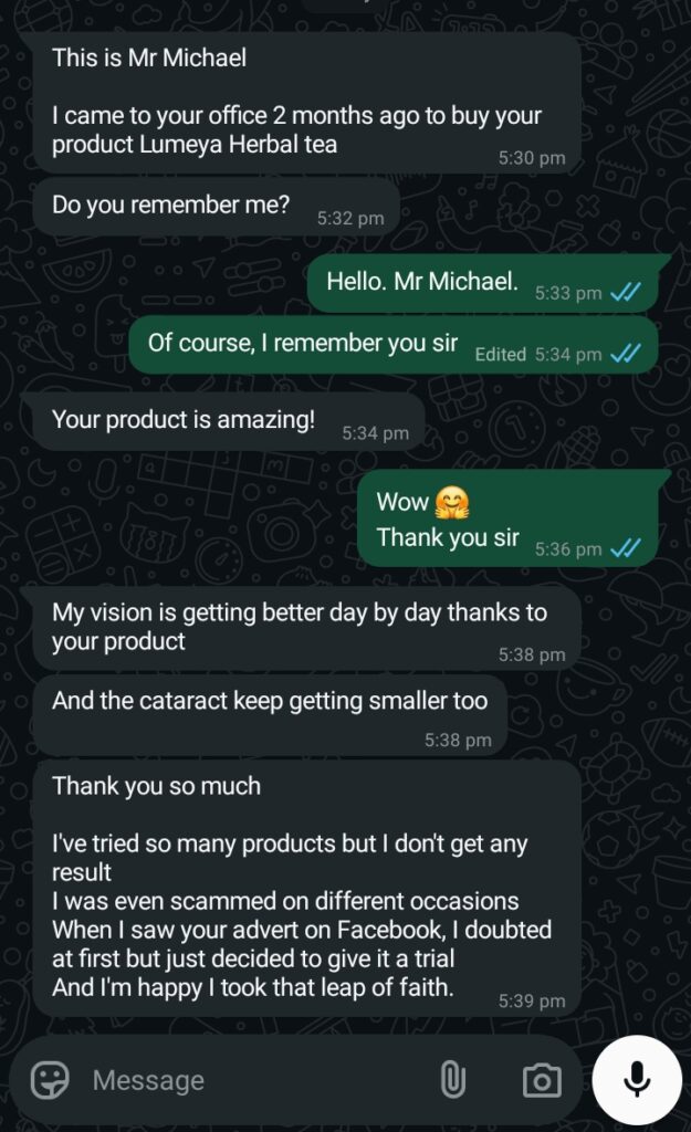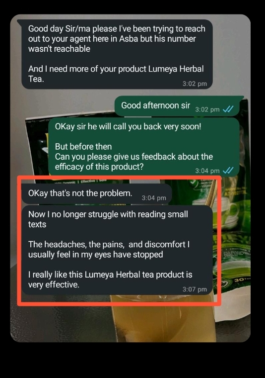 I thought I was going to go blind because of my blurry vision. Lumeya Tea brought me back to good health.