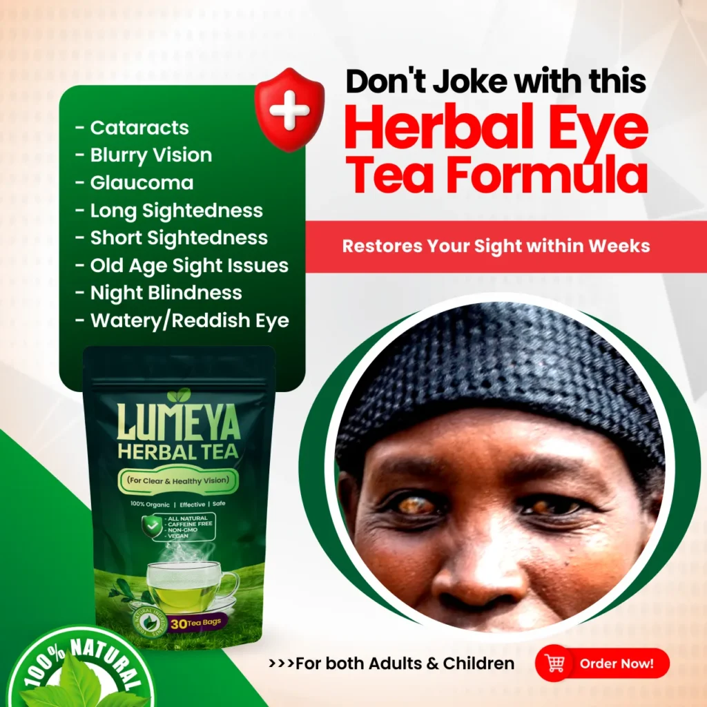 This tea is made from powerful natural herbs that clean and repair your eyes from inside. It clears blockages, improves blood flow to your eyes, and makes them strong again. No chemicals, no wahala, this is just pure herbal goodness!