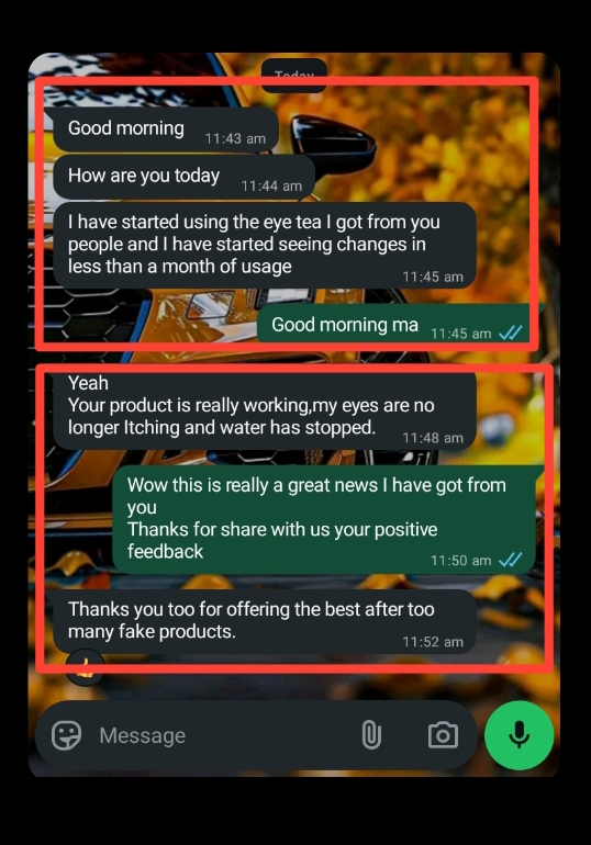 I'm a bus driver for a transport company and when I started having difficulty seeing at night, I knew my life and my work was in trouble. I used this tea for 2 weeks and it is the best decision I have ever made in my life.